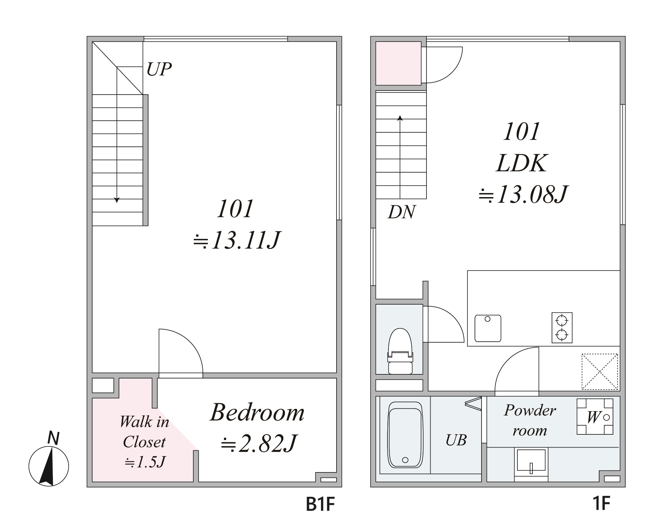 先ずはこちらの101号室。広さは50㎡以上とかなり広く、1人暮らしではデスクや大型のベッドを置いても、かなり余裕のあるお部屋になっています。